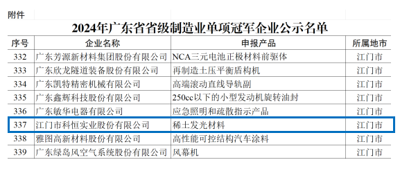 2024年7月,科恒股份獲廣東省制造業(yè)單項(xiàng)冠軍企業(yè)。